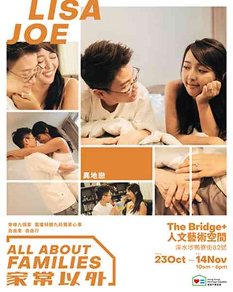 由婚姻平权协会主办的「家常以外 All About Families」展览,于2025年10月23日至11月14日期间,假The Bridge+ 人文艺术空间举行。次展览以「家没有标准答案」为主题,透过九对已婚夫妇与伴侣——涵盖同性、异性及跨性别——的真实故事,邀请大众自由爱、自由行,穿梭九个家庭,围炉倾听九段独家心事,共同探索家的多元定义。