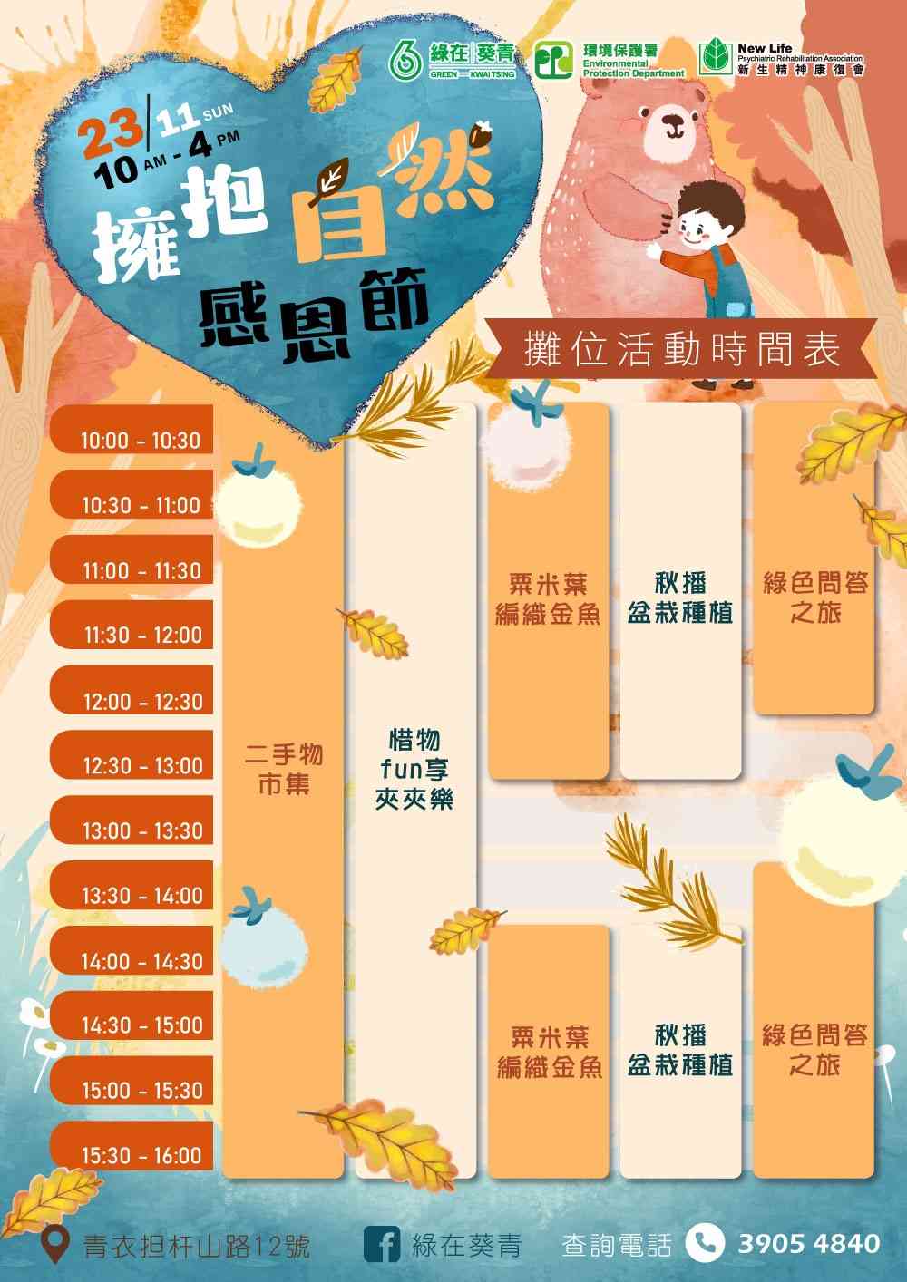 在秋意渐浓嘅11月,绿在葵青邀请大家一齐感受艺术之秋,月尾举行以秋天种植,感受自然为主题嘅嘉年华,click入以下连结就可以报名啦!