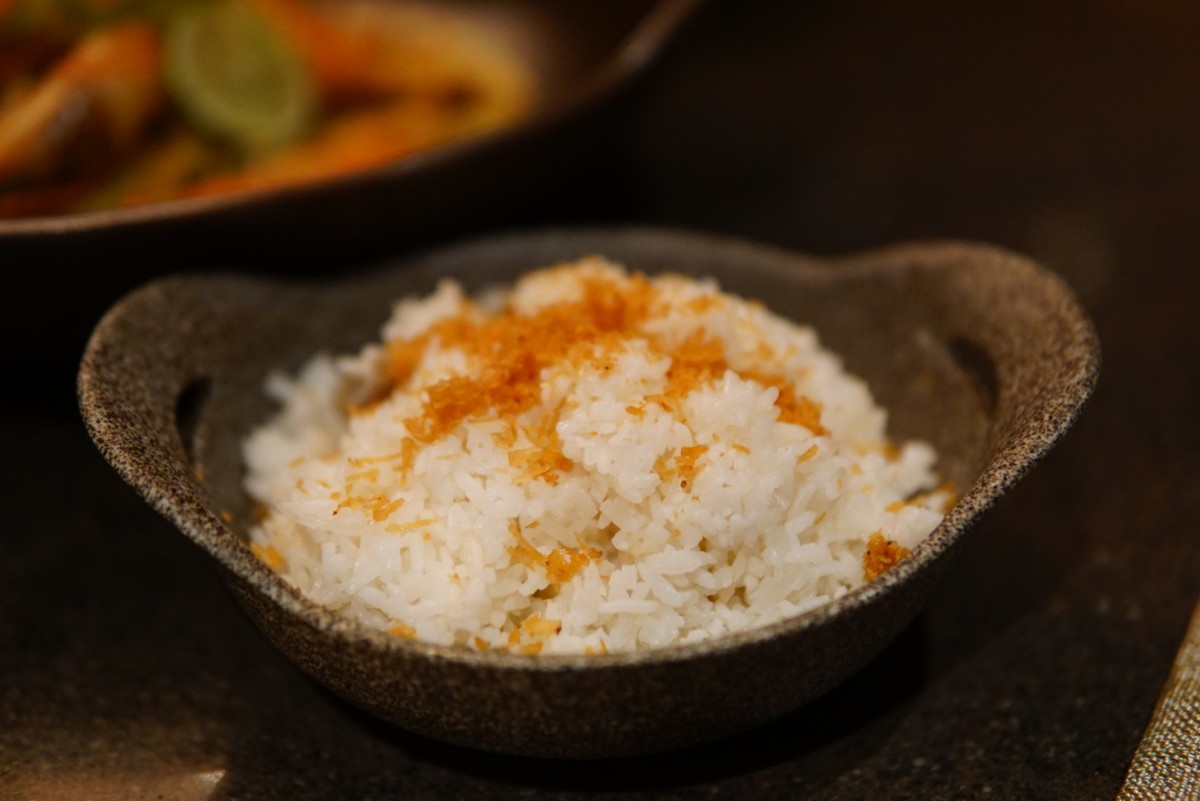 這道菜式絕對讓人回味無窮,箇中滋味實在難以筆墨形容。虎蝦烤至金黃焦香,肉質飽滿且鮮味十足,甘甜的蝦膏令人如癡如醉。菜式再加入充滿香料風味和鮮味的紅色参巴醬一同烹調,味道香口惹味,醬汁中的青檸、小荳蔻和椰子同時衡濃郁味道並同時中和辣味,配搭椰子飯($6)更是一絕。