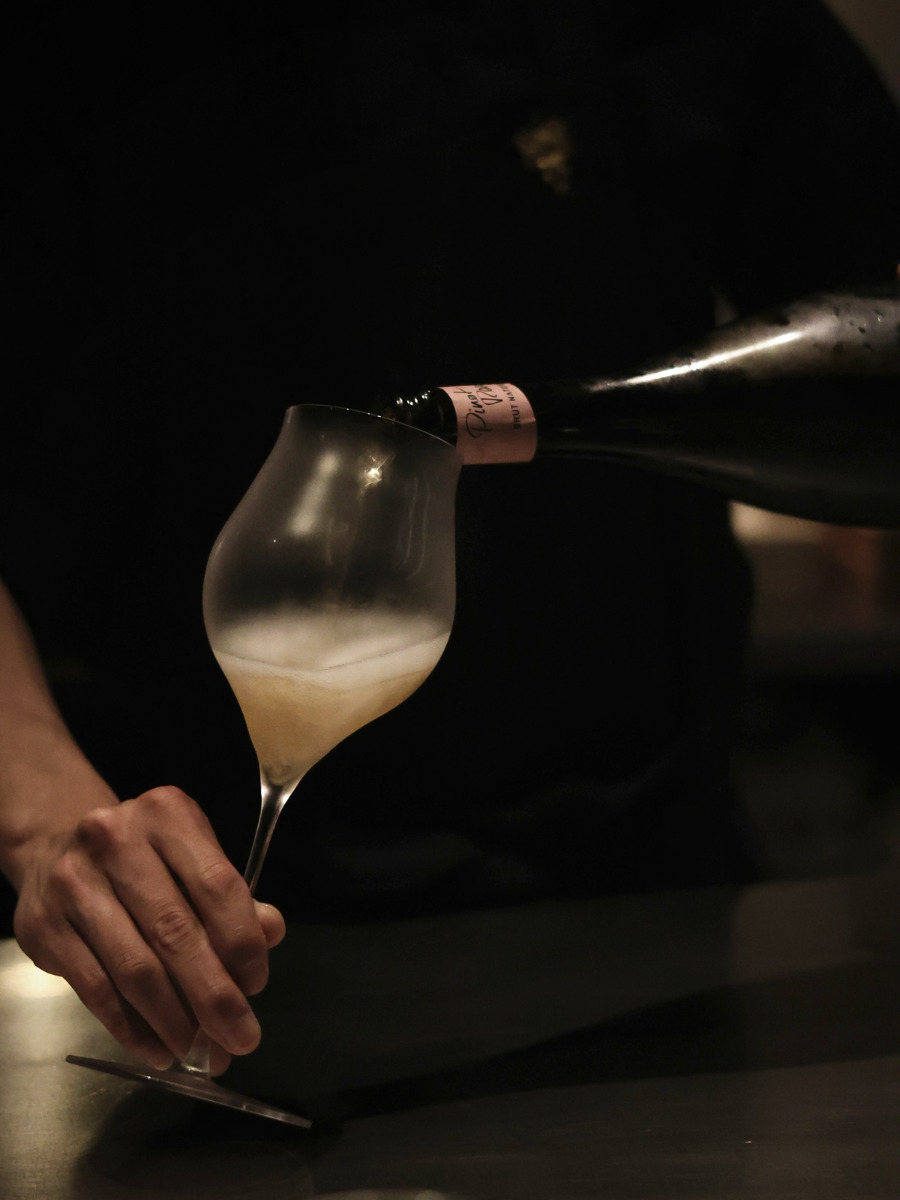 侍酒師由同時擔任餐廳經理的Jay Wu出任,Jay擁有WSET高級認證和法國高級品酒師名銜,曾任米芝蓮星級法國餐廳和廣州白天鵝酒店酒吧的酒水總監。Jay的酒水設計不限於單一類別,更著重於情感和環境的和諧協調,為每道菜式度身定造配對的飲品,搭配從天然葡萄酒和限量版清酒,到小批量精釀啤酒、自釀康普茶以及香料風味的開胃酒都有,務求為客人帶來一個獨一無二的美味回憶。