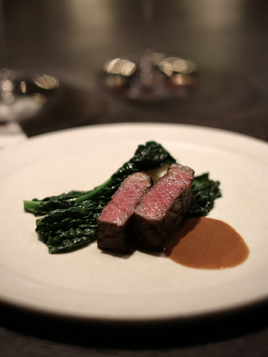 巧克力和牛 – 用上澳洲Mayura M7朱古力和牛入饌,肉味香濃、口感軟嫩,配上炭烤皺葉甘藍,淋上自家製沙茶醬汁,好吃得念念不忘。配酒有2021年的澳洲紅葡萄酒。