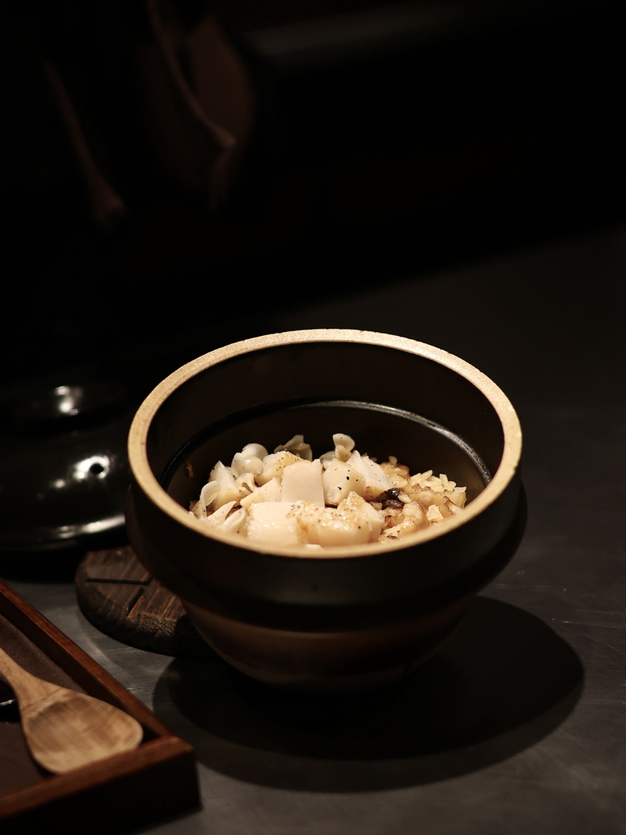 山泉米 – 主食有用山泉米炮製的鍋飯,配料有炒五花肉、幹香菇、蝦幹和干貝,上菜時再加炭烤鮮帶子、炸花生和蔥花,每一口都鮮味滿載,吃完一碗,忍不住要再來一碗。
