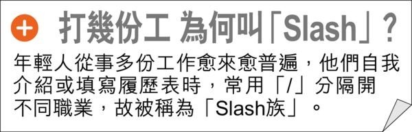 【晴報專訊】年輕一代嚮往自由,擇業亦不愛被束縛。近年世界各地興起身兼多份職業的「Slash族」。有本港調查發現逾半受訪港青曾從事彈性工作,部分每周工時不足30小時,有人打5份工,以追求自由控制私人時間和賺更多收入。