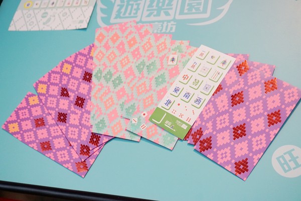 朗豪坊亦以「麻雀」設計了「喜雀耍樂十三么利是封」,運用了麻雀牌最具代表性的長方形,拼湊出具時代感的菱格圖案,更附有「十三么喜雀貼紙」,讓你隨心拼貼出個人風格!