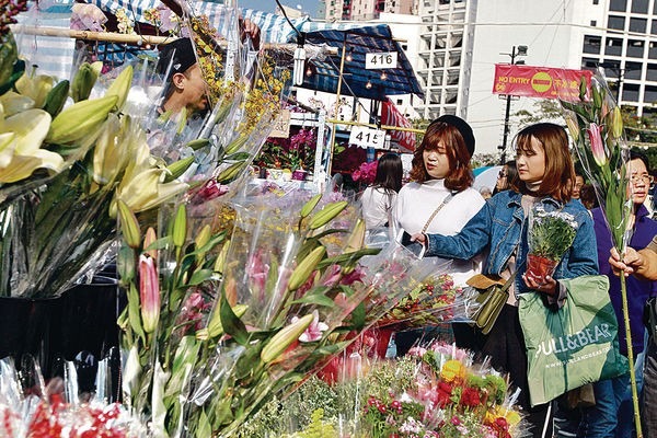 在旺角的花墟,昨入夜後人潮擁擠,與女兒一同逛花市的鍾太斥800元「掃花」,她說:「價錢不是最重要,年花係代表花開富貴。」而繽紛園藝總經理陳定宇指,今年生意額及花價均與去年相若,人均消費為200至300元,最受歡迎的包括百合、蘭花、串串金等,「今年天氣好,好適合行花市」,預料今日中午起會減價準備「收爐」。