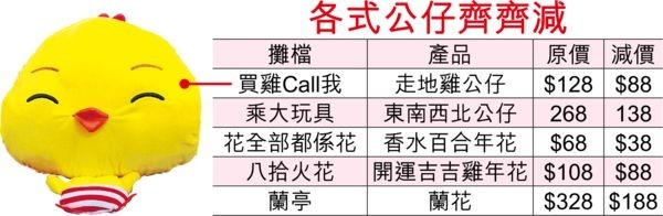 「乘大玩具」主打懷舊造型公仔,賣138元的東南西北公仔今或再減價。