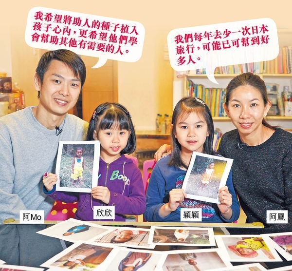 早前他們助養的一名14歲泰國女孩,寄來一張穿校服的照片,信中提及立志成為教師,冀幫助同村兒童。阿Mo坦言看到善心種子在她身上發芽感欣慰。他們的長女穎穎和幼女欣欣亦受父母影響,樂於幫助有需要的人。