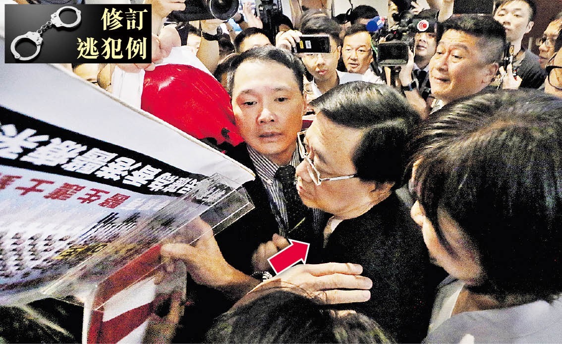 修例爭議不斷,李家超(箭嘴示)離開立法會特別會議時,一度遭民主派議員包圍。