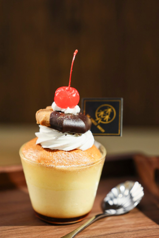 聖誕蘭王布丁燒,面層輕盈鬆軟如雲朵的清蛋糕,配搭香濃蛋香的焦糖布甸及一口香脆朱古力曲,三重口感,完美融合。