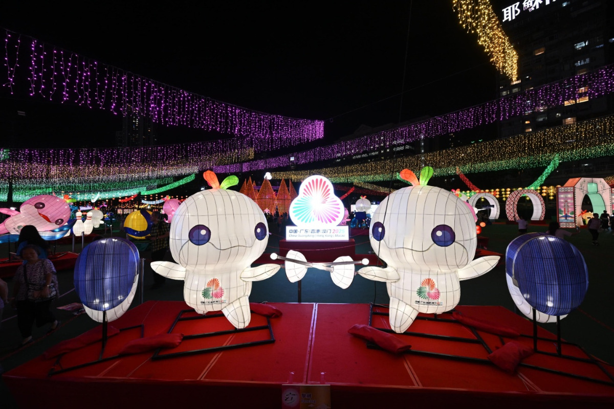 另一亮點綵燈《金耀全運 活力飛揚》則以十五運會和殘特奧會吉祥物展示香港承辦的競賽項目,以不同運動造型環繞閃耀的會徽,為運動員打氣。