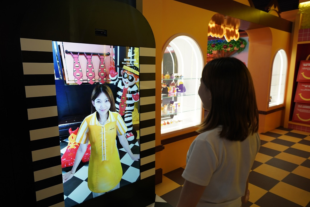 最喜愛打扮的漢堡神偷精心打造的制服店,特別有互動小遊戲,大家更可透過 AR 裝置即場換上制服,或與巨大化麥當勞叔叔長靴合照。小飛飛主題區將香港麥當勞 50 年來與不同品牌及 IP 人物合作推出的玩具珍藏展示出來。