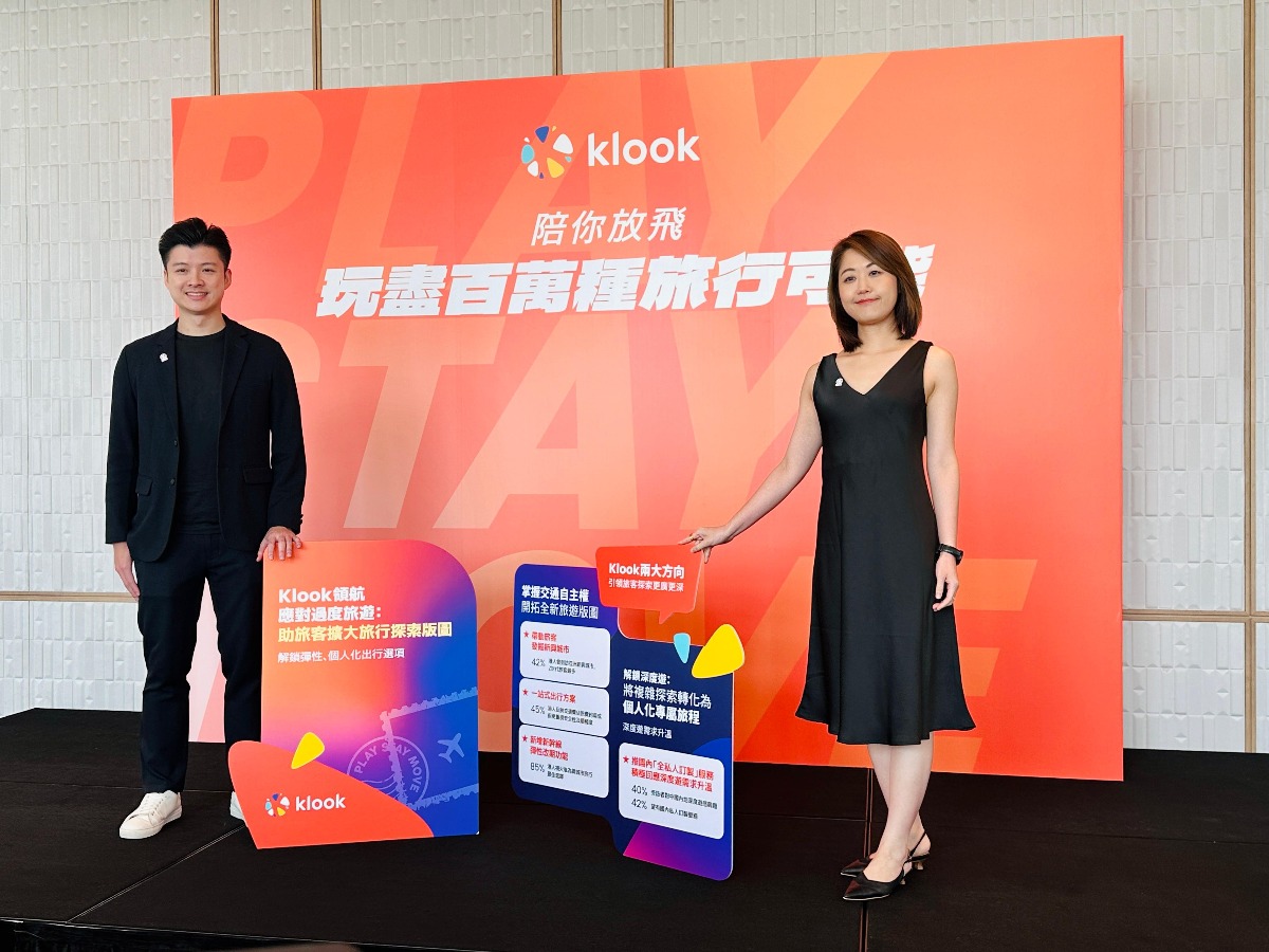 Klook香港、澳門及泰國總經理岑皓祺先生,以及Klook香港及澳門區市場營銷總監陳詠賢女士,早前於Klook「陪你放飛11年」傳媒招待會上,跟大家分享問卷調查的結果。(攝影:Katty)
