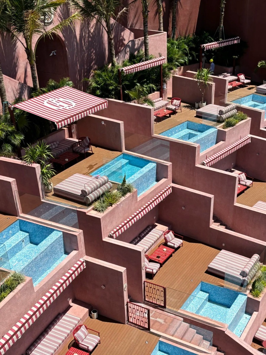 酒店的外觀設計,帶點地中海的風格,啡啡紅紅的土泥牆壁,十分獨特,因為深圳不少海邊度假酒店,不是啡加白的文青風,就是白加藍的希臘風。或者小紅書上,大家P圖P成心目中想要的顏色,所以有淡粉紅色、有如火腿般的粉紅色,又會有啡色,不過官方說法是「中國紅」!但無論如何,每個角落都十分適合打卡!