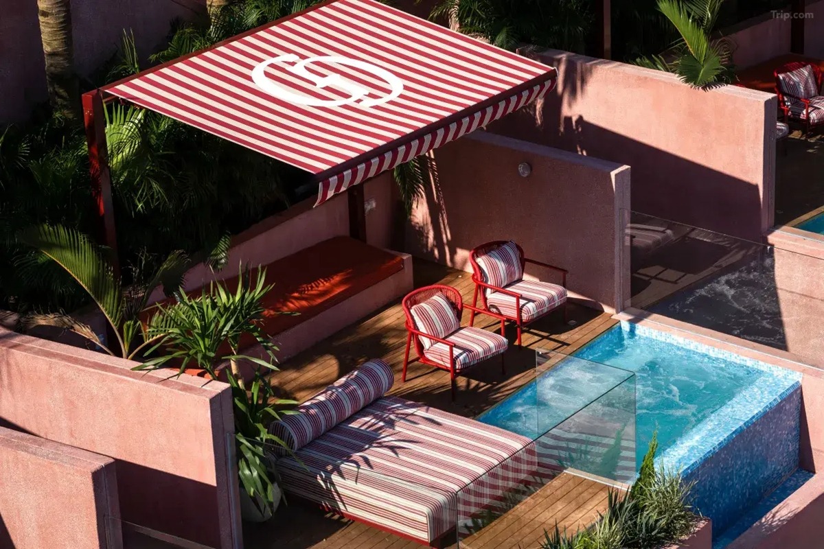 「懸崖恆溫泡池」設有day bed、梳化、恆溫泡池,就算秋冬天都可以嬉水及享受日光浴。(圖片來源:trip.com)