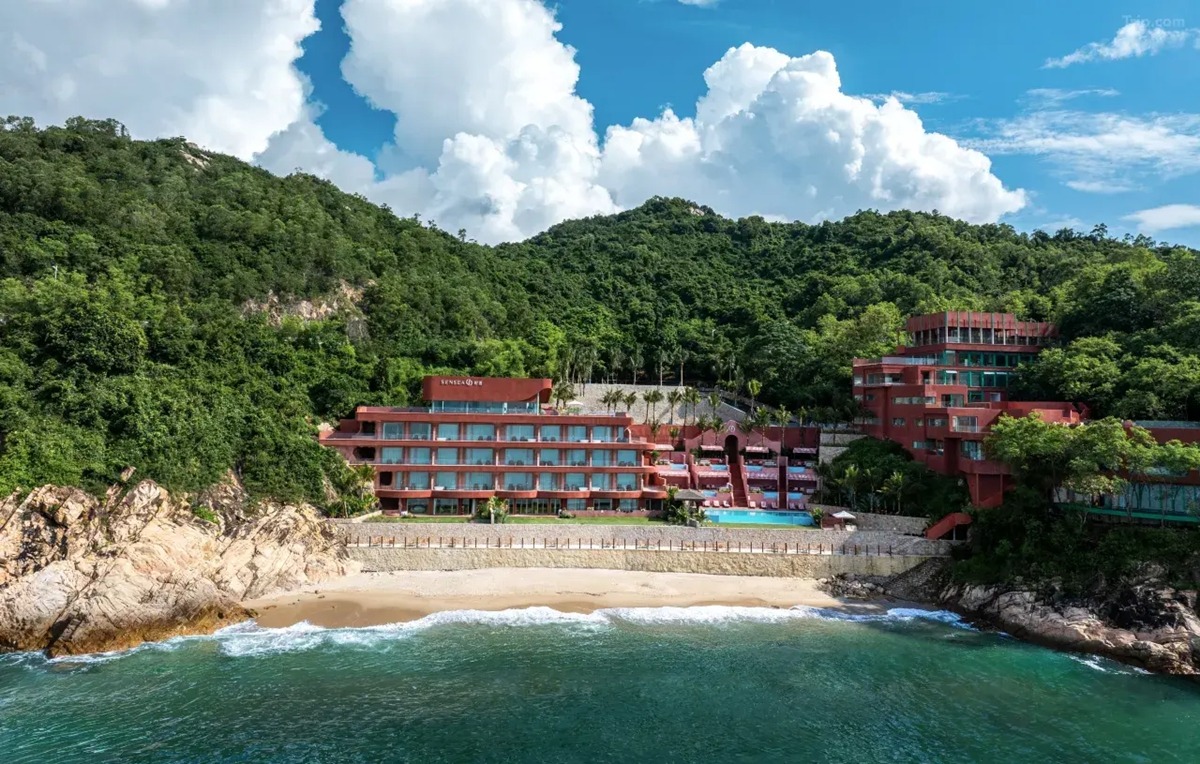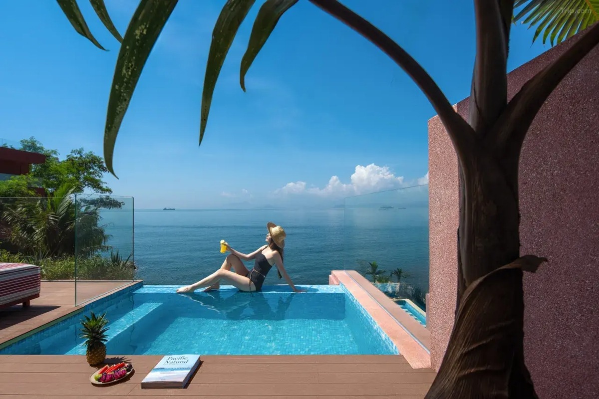 「松善·SENSEA山海度假區」位於深圳龍崗區,面向大鵬灣,景致開揚,自成一國,很有度假的感覺。這間小型奢華精品酒店最大的特色,是設有一個非常適合打卡的玻璃無邊際泳池,另外還有多個獨立的「恆溫泡池」供住客使用,為他們提供更私人的空間享受日光浴。