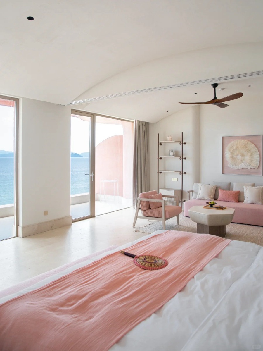 客房以白色及粉紅色作主調,十分浪漫。(圖片來源:小紅書@裴Pey)