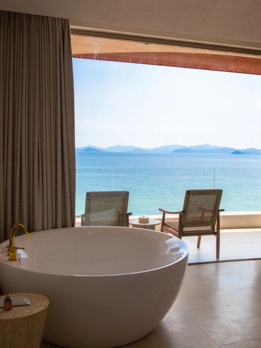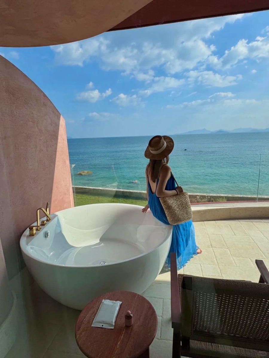 全部客房都有海景露台,部分更在落地玻璃旁設置浴缸,度假感覺濃厚。(圖片來源:小紅書@甜甜Sarah)