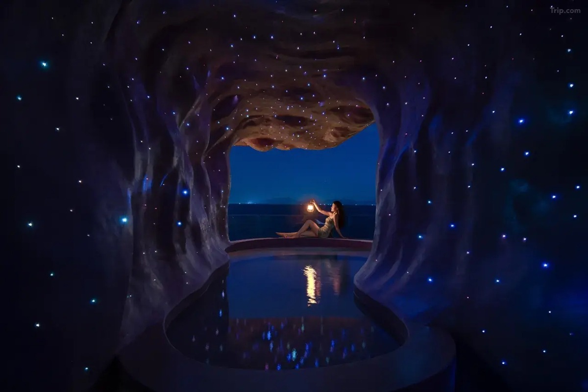 晚上的「星空洞穴泡池」,感覺十分浪漫。(圖片來源:trip.com)
