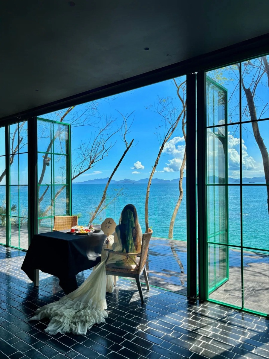 從酒店往外看,藍綠色的海水非常清澈,可以媲美沖繩。(圖片來源:小紅書@禾包鼓鼓)