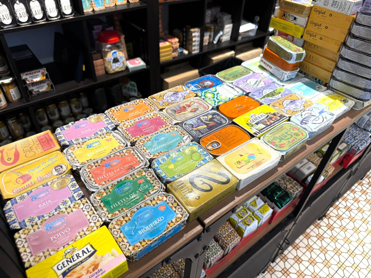 令人眼花撩亂的葡萄牙罐頭魚牆,華麗的包裝讓人賞心悅目。