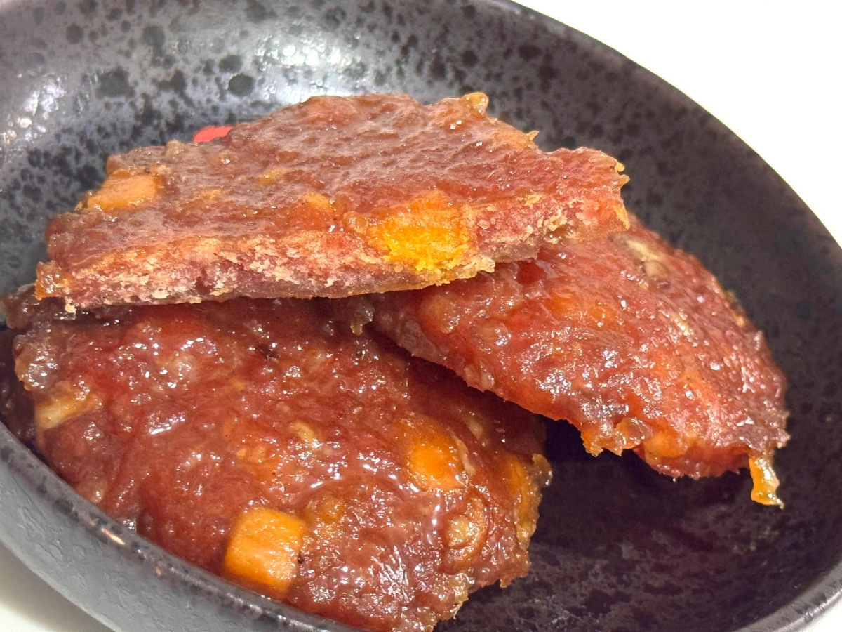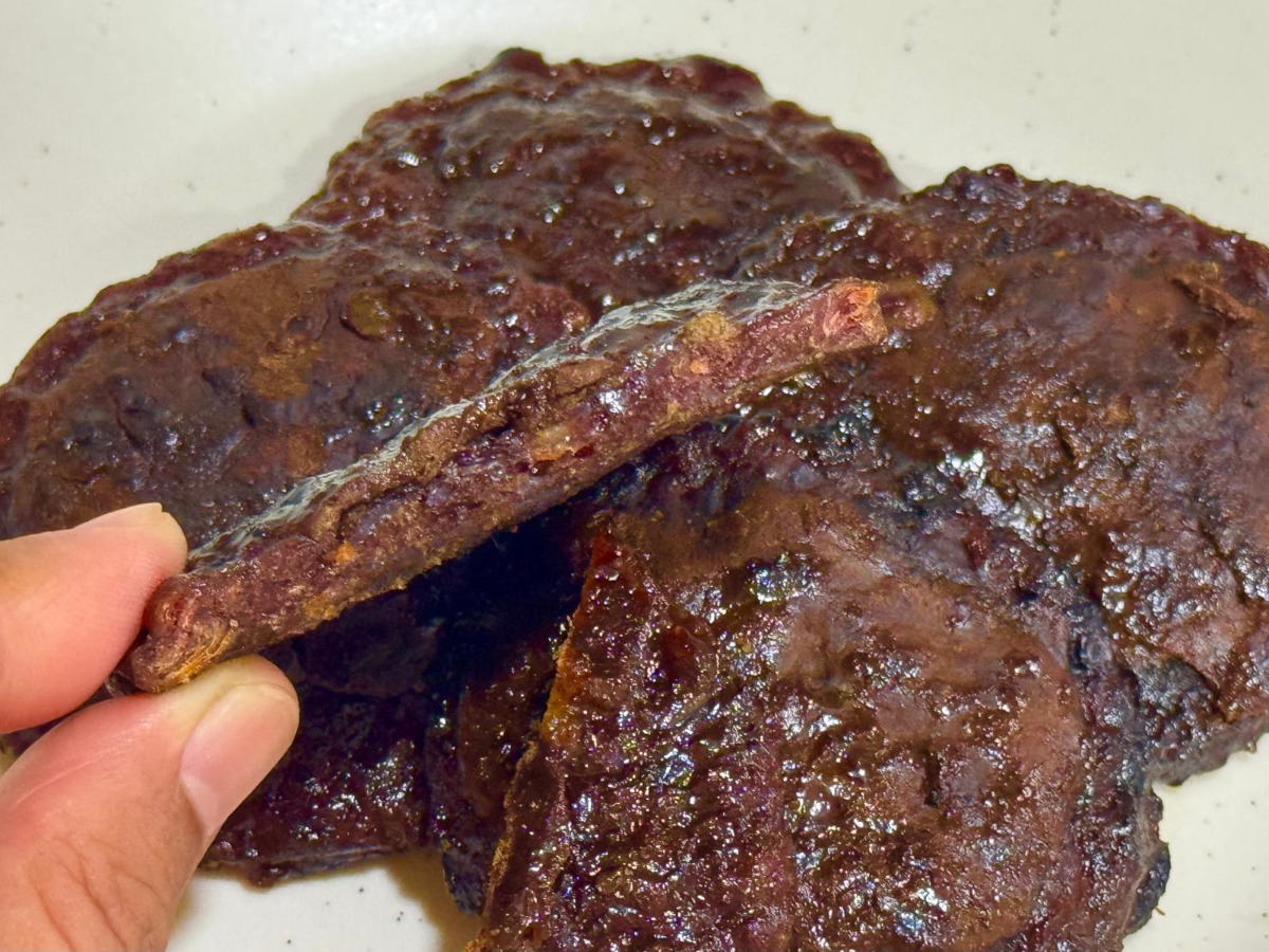 我特別喜歡佢哋採原片肉烤製的肉乾,入口帶嚼勁且富肉香,成本較高之餘,不加任何添加劑及防腐劑,購買時店家都會提醒客人別買太多,回家亦一定要放進雪櫃,因保質期只有一星期,實在吃不完我會放入冰箱,之後以氣炸鍋重新烤一下。