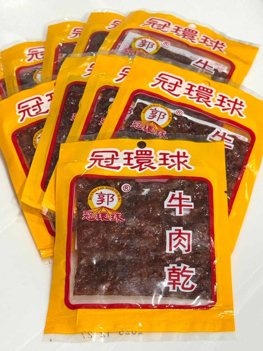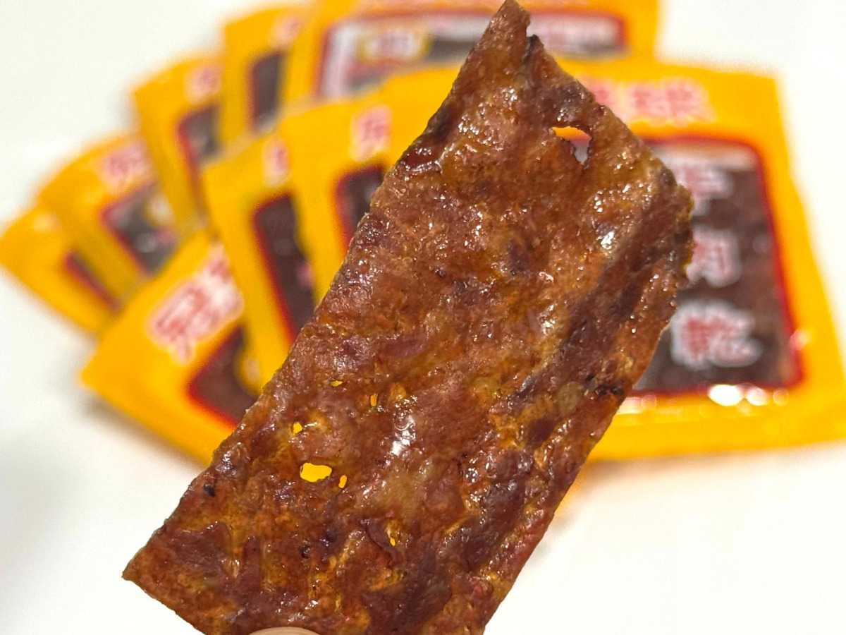 這款獨立包裝的薄片牛肉乾,係兒時學校小賣部的熱門小食。澳門幣75 /每札10包