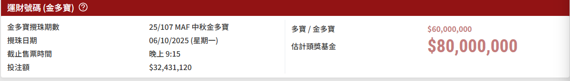 嘩嘩嘩!今年中秋金多寶一注獨得可獲8,000萬令人心動!香港賽馬會亦公佈歷年中秋金多寶最旺及熱門號碼,又係咪你的心水號碼?留意,今次中秋金多寶將於10月6日攪珠,月圓之夜會否係你美夢成真之時,大家記得把握機會啦!
