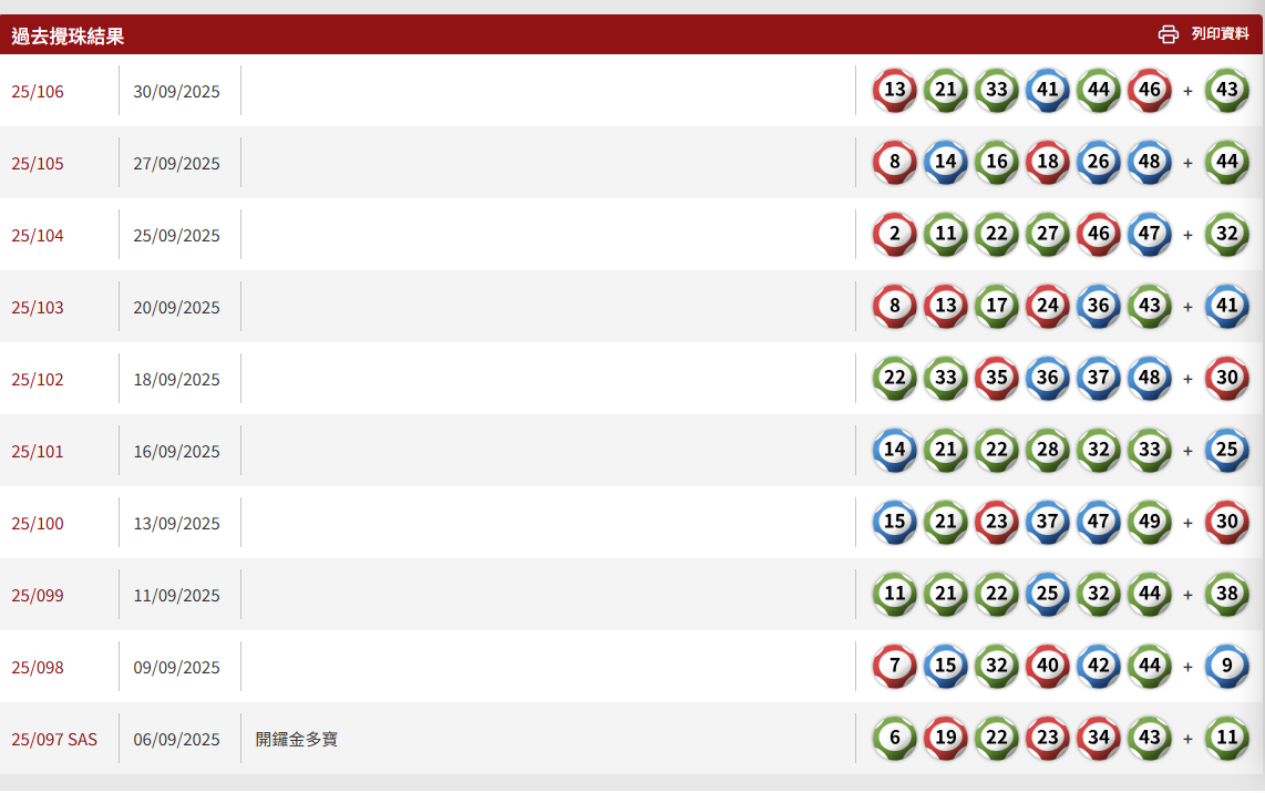 過去十期攪珠結果以22號(5次)、21號、32號、44號(4次)、11號、33號(3次);而熱門疊字號碼為22號(5次)、44號(4次)、11號、33號(3次);熱門相連號碼為21及22號(2次)、22及23號(1次)。