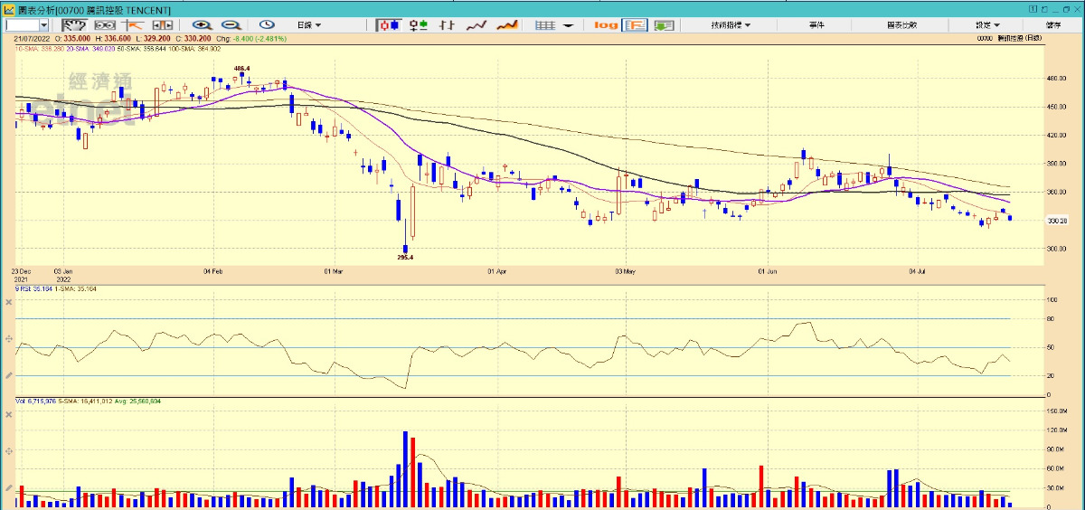 上月傳出騰訊(00700)南非大股東Naspers及旗下Prosus為籌集回購資金將出清所持騰訊股份,據報Naspers及Prosus過去三星期已手起刀落分批減持,6月29日至7月15日期間Naspers及Prosus在內的高盛及大摩倉位已合共流出3180萬股,即使騰訊頻頻回購都救價乏力。黃偉康舉例如比亞迪(01211)都同樣面對股神減持風險,但比亞迪所處的新能源汽車板塊經常獲中央政策扶持,結果股價不跌反升。但對比騰訊面臨減持風險,但卻沒有政策因素等利好消息支撐股價,故股價難以向好。
