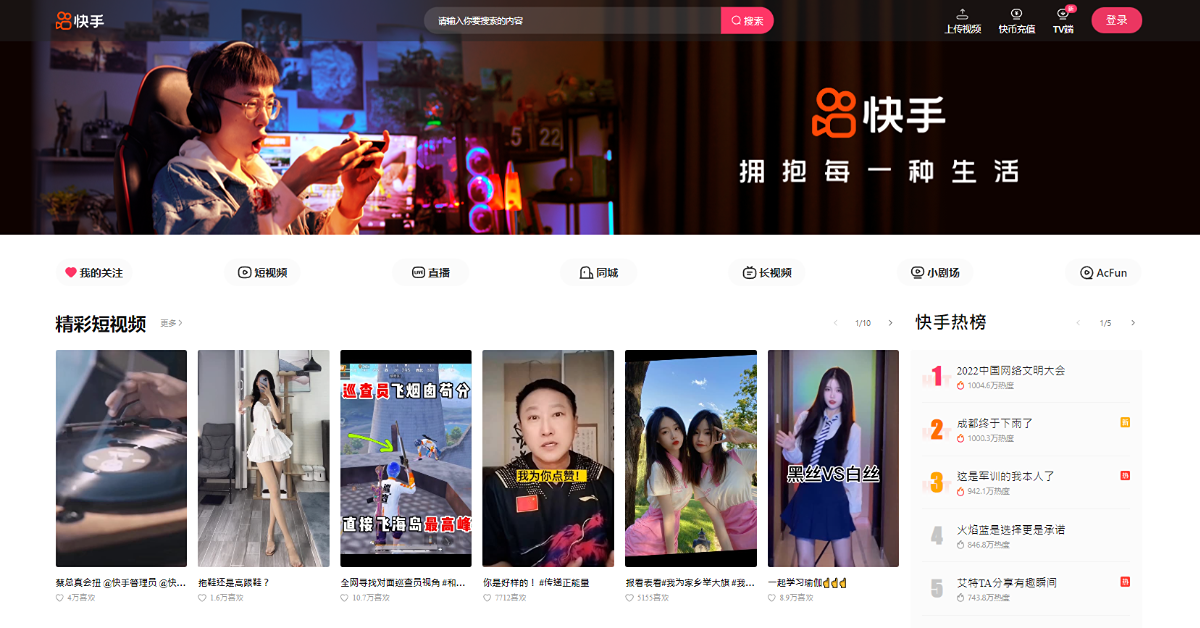 (快手網頁截圖)