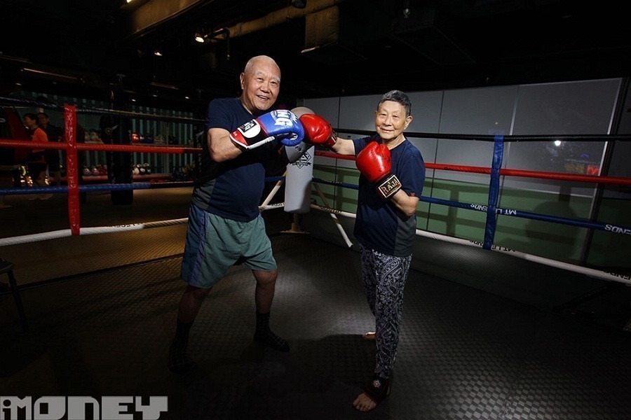 兩位戴上拳套、戰鬥格拍得住曹星如的長者拳手,分別是87歲的陳錦銘及其80歲的太太王月英。別小看陳錦銘滿頭白髮、王月英「細細粒」,二人分別學了泰拳10個月和半年,當初因女兒Anne開了打拳學校Elite,二人跟女兒一起上堂,漸漸愛上這刺激運動,但王月英笑言不會跟後生博命,他倆只會就住玩,更指玩了泰拳後,不似以前怕冷,身體「硬淨」得多。退休長者不但關注身體,二人對按證年金也有所聞,知道最多可投保100萬元。但王月英笑言沒錢投保,坦言當年二人完全沒有退休部署,「我先生以前行船的,手停口停,那有甚麼退休保障。我們二人也不懂,退休後有政府生果金,仔女照顧吓咁囉。」